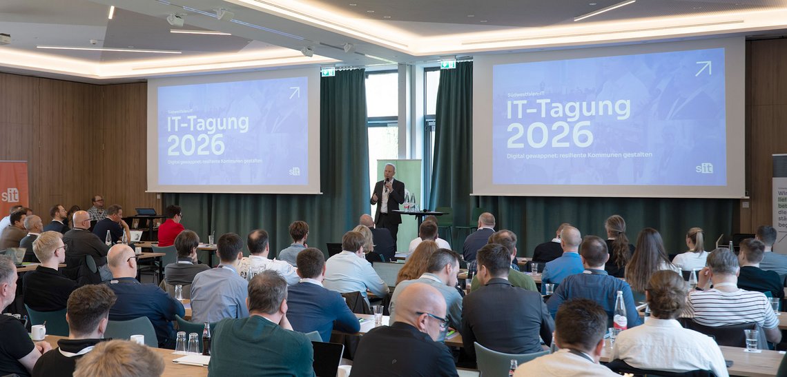 Nein, denn ein Mikro reichte. Die Botschaften waren lautstark und prägnant auf der diesjährigen, sehr erfolgreichen IT-Tagung der Südwestfalen-IT. Über 80 IT-Koordinatoren und Digitalexperten aus dem Verbandsgebiet, drei hochkarätige Speaker, branchen- und fachbezogene Präsentationen, inspirative Workshops und fünf einflussreiche Partneraussteller – am 12. und 13. März 2026 ging es übergreifend um das Thema „Digital gewappnet: resiliente Kommunen gestalten“. Ein Rahmenprogramm, das sich sehen lassen konnte.