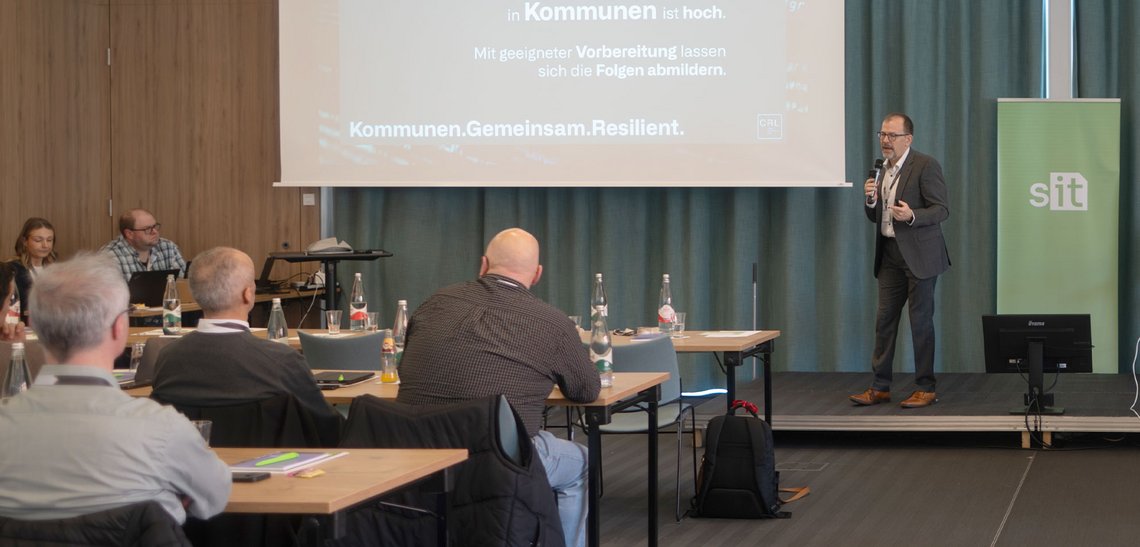 „Denken Sie an folgende Situation in der Kommune und an das Bürgerbüro: Es ist 9.15 Uhr, die Menschen warten. Sie möchten Dokumente abholen, eine KFZ-Anmeldung durchführen, und das neugeborene Kind anmelden. Dann sagt plötzlich jemand: ‚Das System ist heute nicht erreichbar‘“, so leitete Mirco Pinske, Geschäftsführer der SIT, in das Event ein. Ein klares Szenario, das eine direkte Aktion erfordert. Die Funktionsfähigkeit unseres Staates hängt mitunter von funktionierender IT ab, vor allem der kommunalen IT. Resilienter IT.